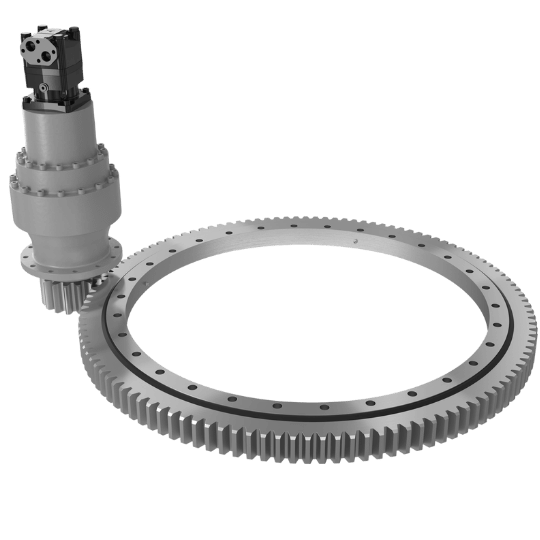 SP-I är en kompakt slew drive med direktdrift, stabil pinionupplagring och flexibel hydraulisk eller elektrisk motorintegration.