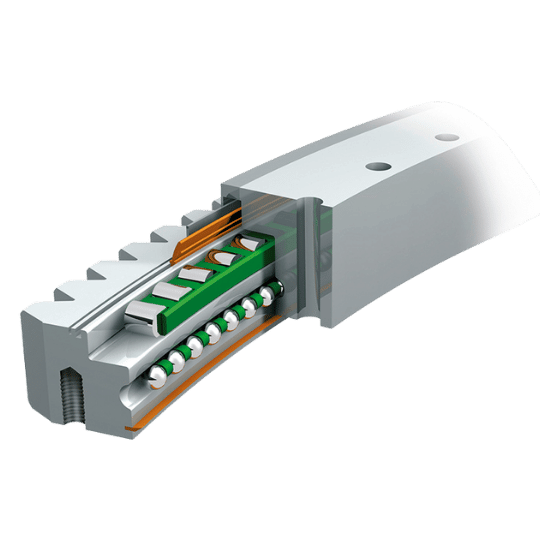 Raceway diameter från 1250 mm till 4750 mm. Maximalt lutningsmoment 1 735 kNm till 48 351 kNm.